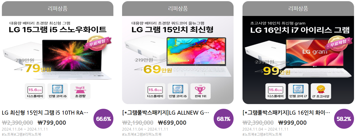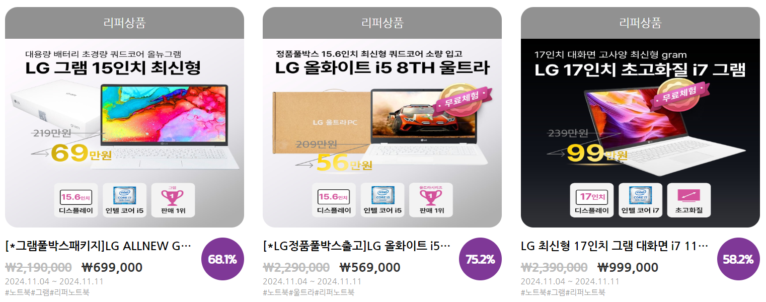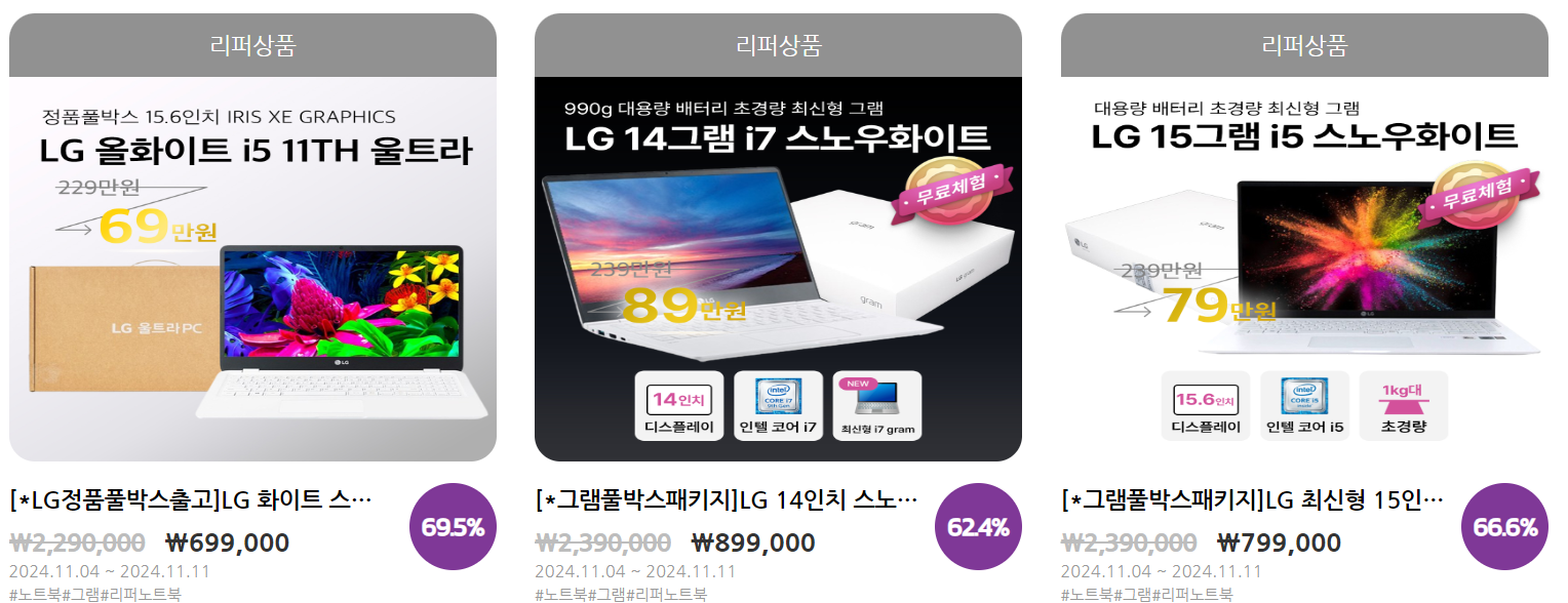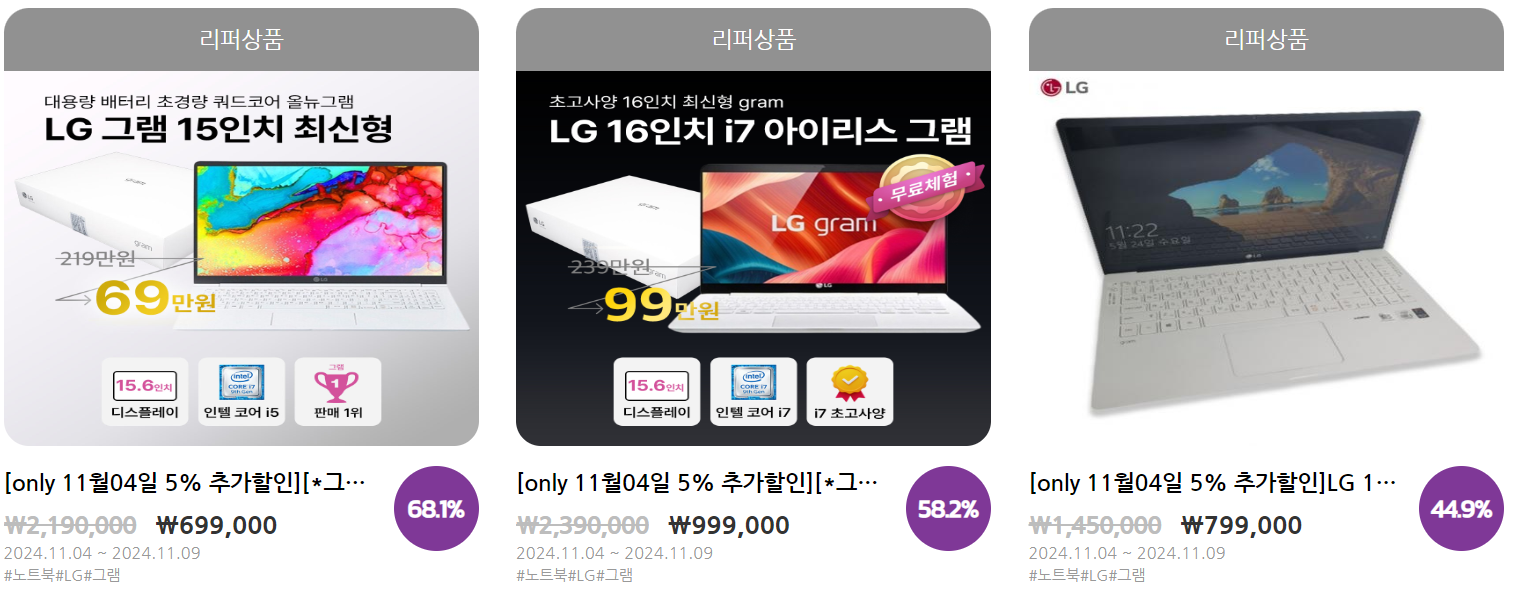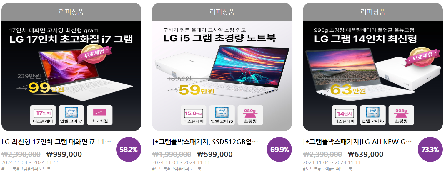 - 그램 노트북: 코리아 세일 페스타에서 가볍고 성능이 뛰어난 LG 그램 노트북은 업무와 학업에 적합한 제품으로, 할인된 가격에 제공됩니다.
