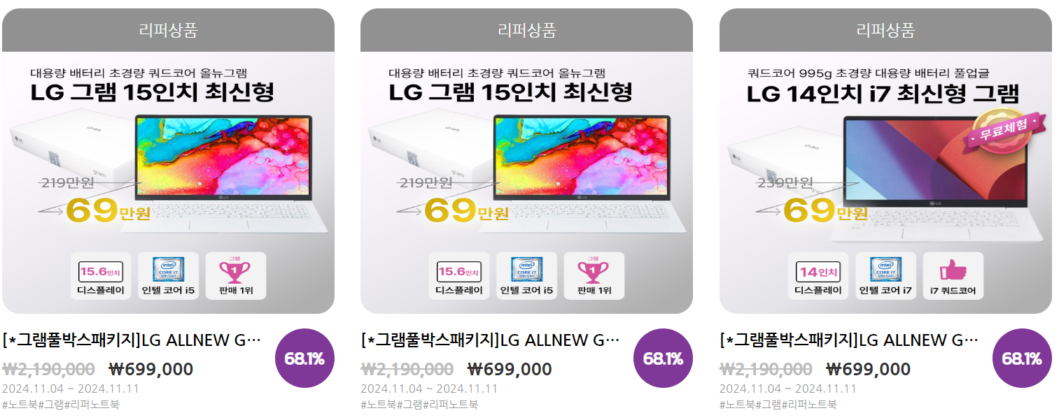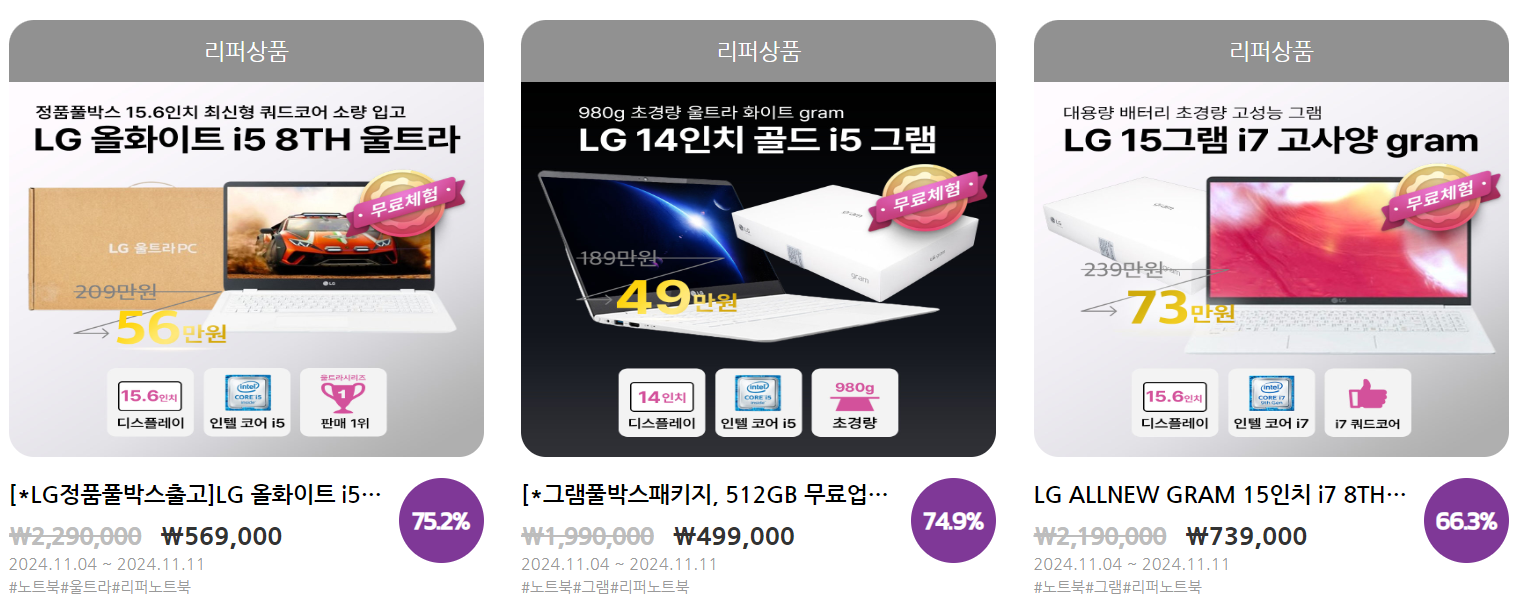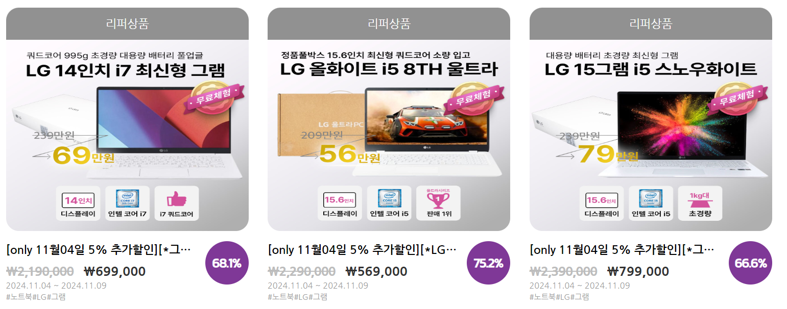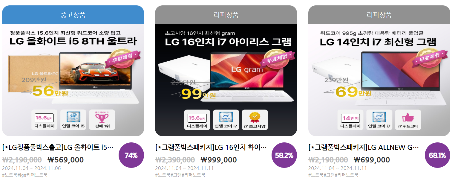 - 그램 노트북: 코리아 세일 페스타에서 가볍고 성능이 뛰어난 LG 그램 노트북은 업무와 학업에 적합한 제품으로, 할인된 가격에 제공됩니다.