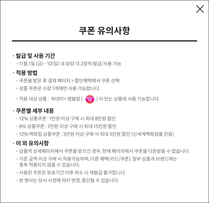 | 신세계백화점 | 명품 패션 및 뷰티 브랜드 특별 할인 |