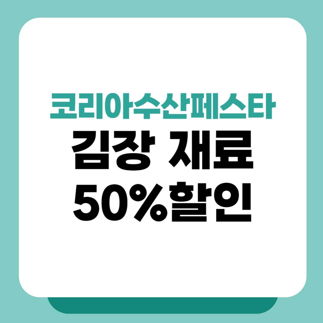 김장철을 맞아 코리아 수산 페스타가 준비한 풍성한 할인 혜택이 다가옵니다! 코리아 수산 페스타는 김장 재료 구입 부담을 덜어드리고자 2024년 11월 13일부터 12월 1일까지 진행됩니다. 이번 코리아 수산 페스타에서는 전국 수협과 온라인몰에서 젓갈류, 굴, 천일염 등을 최대 50% 할인된 가격으로 구매할 수 있어 김장 준비에 큰 도움이 될 것입니다.